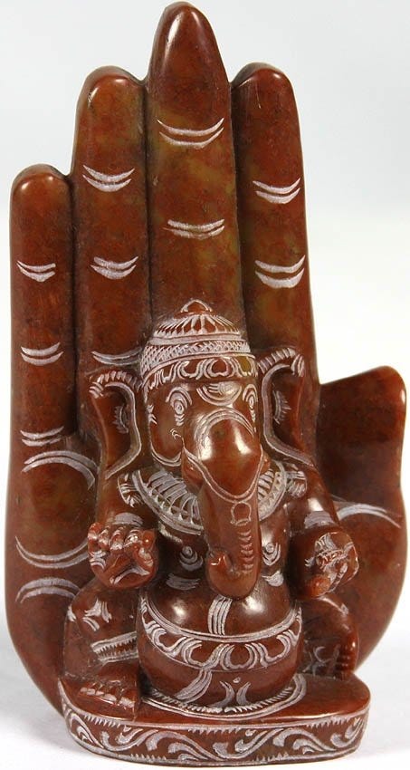 Lord Ganesha Seated in Royal Ease Posture Against the Aureole of a Hand
